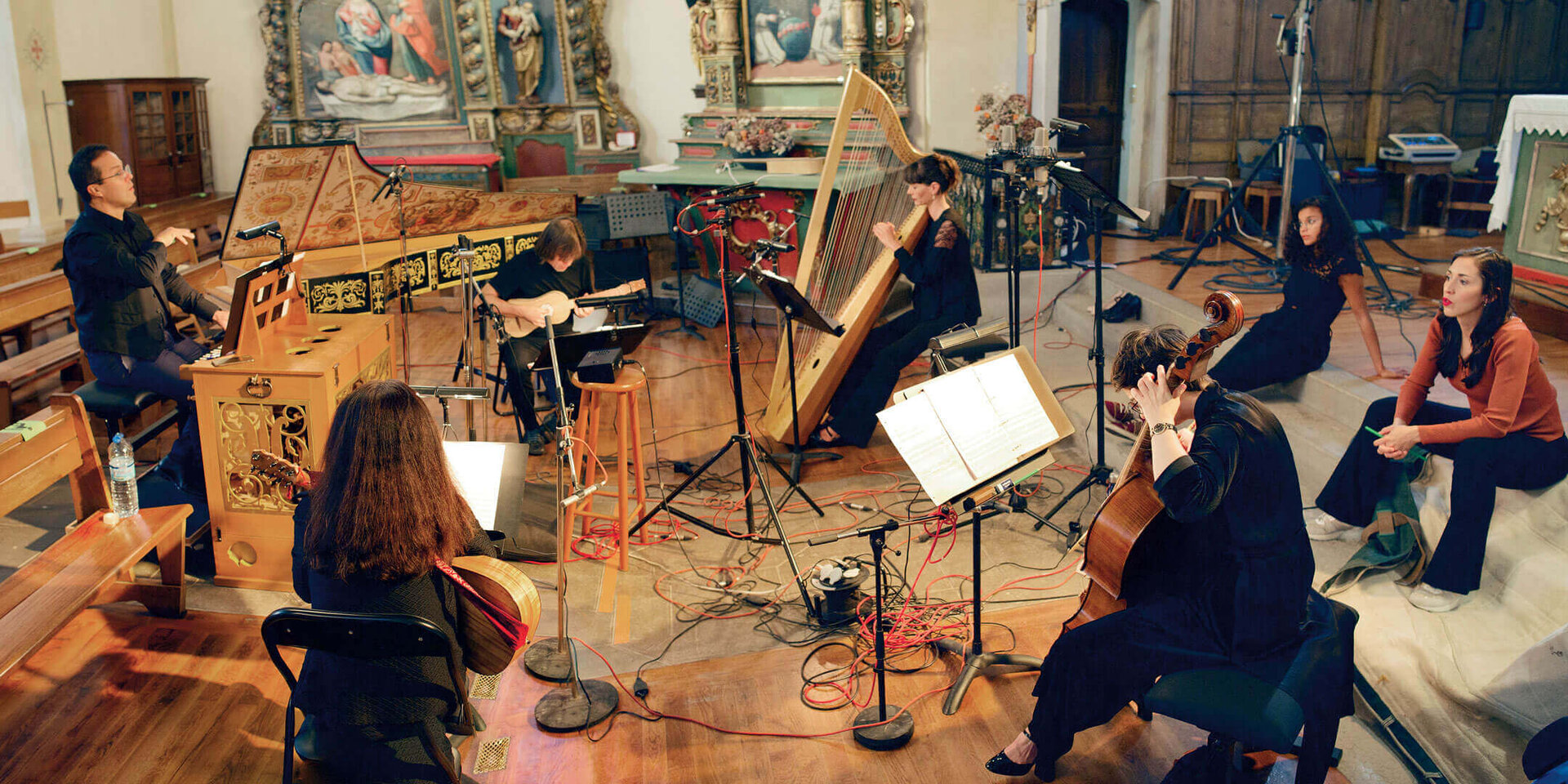 Après la longue période de silence, imposée par la pandémie à tous les musiciens, j’ai senti que c’était le bon moment pour mon ensemble et moi de nous retrouver autour de cette musique si intérieure et d’aborder enfin ce compositeur. Nous avons choisi une magnifique église baroque face au Mont Blanc, au cœur de la Savoie, pour enregistrer quelques-uns de ses plus beaux madrigaux. Ce fut un beau moment de se retrouver autour de ce projet pendant cette période si bouleversée. En tant qu’argentin, je suis habitué aux épreuves, et j’ai appris qu’en s’imprégnant de cette musique, on peut mieux les dépasser. Je pense souvent aux compositeurs baroques qui ont affronté de graves crises comme la peste et les famines. Dans ces périodes difficiles, l’art nous permet la « catharsis ». Il purifie nos émotions et apaise nos colères. »